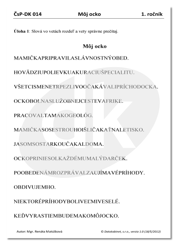 Prosím prispôsobte úlohu podľa individuálnej schopnosti dieťaťa